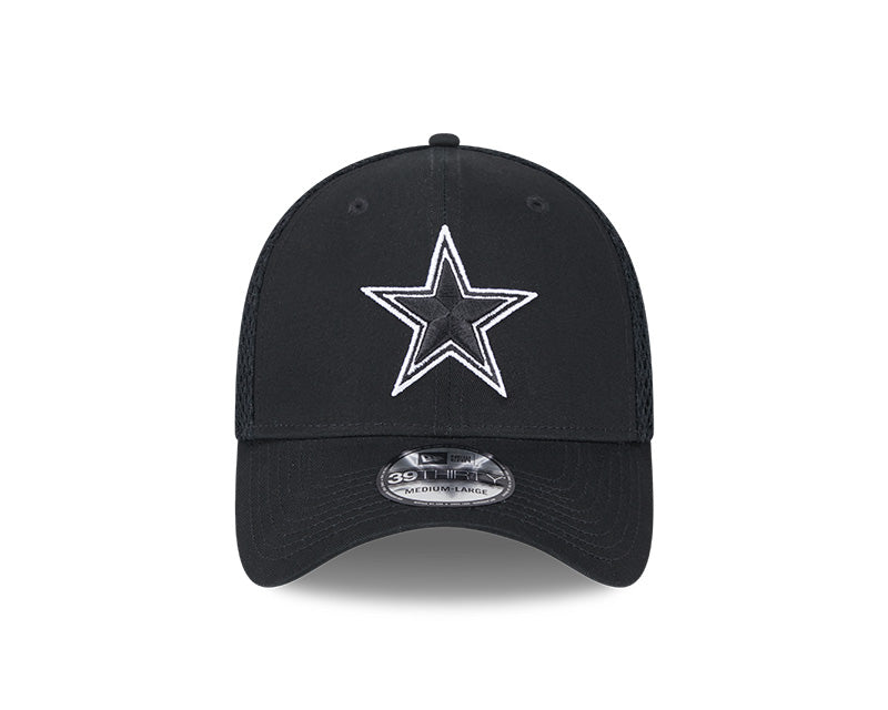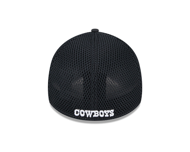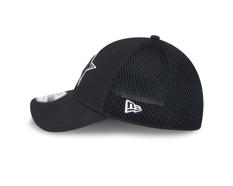Esta gorra New Era 39THIRTY de los Dallas Cowboys de la colección NFL presenta un diseño elegante en color negro con el icónico logotipo de la estrella de los Cowboys bordado en los paneles frontales en hilo blanco. Incluye el NFL Shield bordado en la parte trasera y el flag de New Era en el lateral izquierdo. Su confección con tejido elástico y visera curvada garantiza comodidad, estilo y un ajuste perfecto, ideal para los fanáticos del fútbol americano y de los Cowboys.