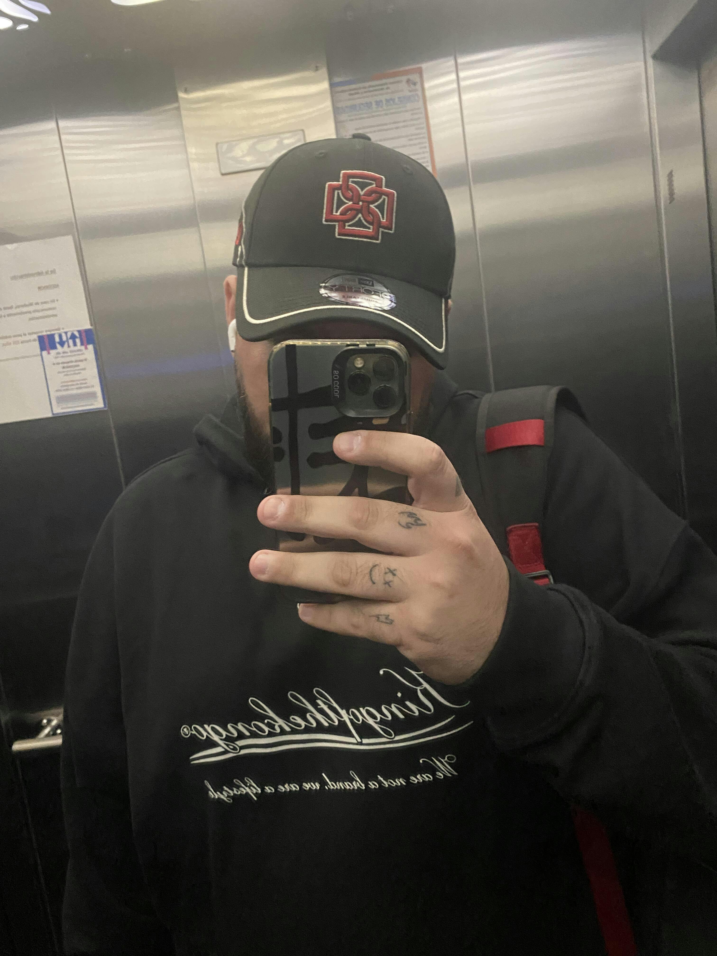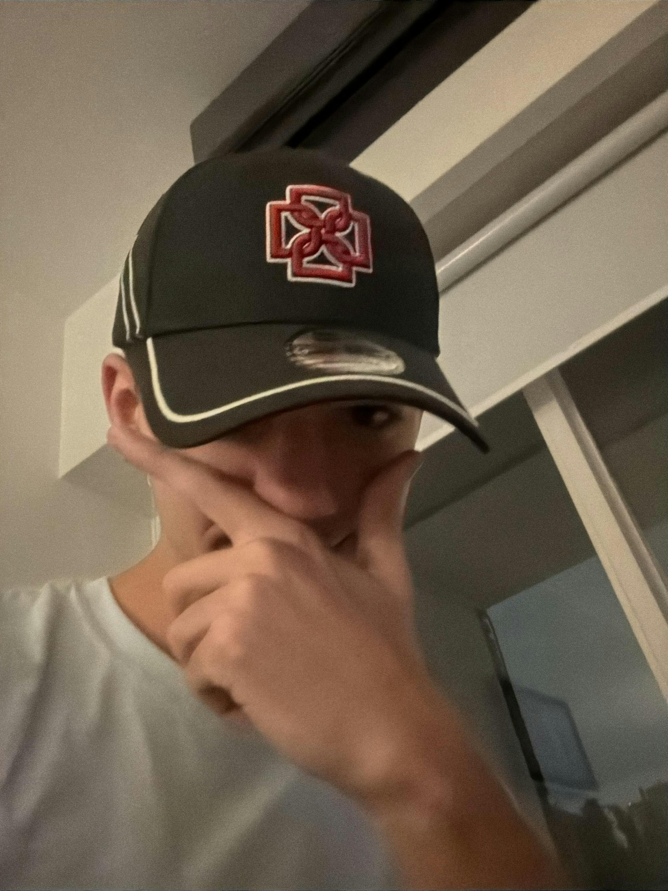 Gorra negra con detalles en rojo y blanco. Logo Ameri bordado al frente. El bordado trasero retoma uno de sus tatuajes más icónicos, símbolo de la dualidad que lo acompaña, mientras que al costado mantiene el logo de New Era en rojo. Cierre ajustable para mayor comodidad. 100% algodón.