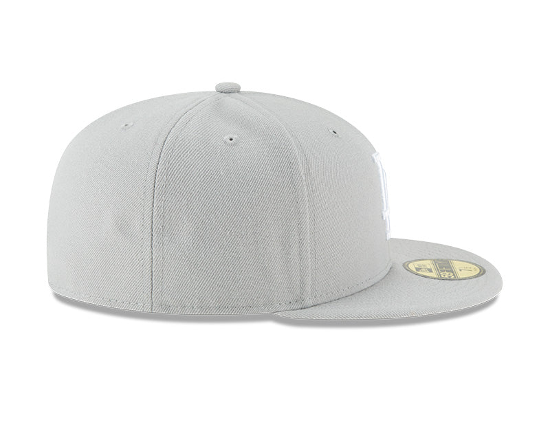 Al ser una silueta 59FIFTY, esta gorra es de tipo fitted (cerrada), reconocida mundialmente por su corona alta y estructurada que mantiene su forma impecable con el paso del tiempo. El icónico logotipo "LA" aparece bordado en relieve con un blanco nítido en el panel frontal, creando un contraste elegante y sofisticado.