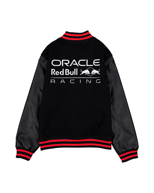 Confeccionada en un color negro profundo, la campera destaca por su diseño dinámico con paneles laterales que estilizan la prenda y refuerzan su carácter deportivo. En el frente, el icónico escudo de Oracle Red Bull Racing está presente con gran nitidez, acompañado por el logotipo de New Era. Cuenta con un cierre frontal completo, cuello de perfil alto para mayor protección y bolsillos laterales discretos. Es la pieza superior definitiva para completar un look de "escudería" con un acabado premium.