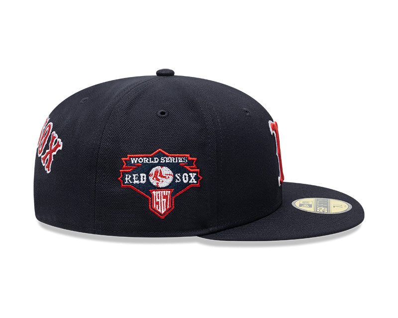 El modelo destaca por el icónico logotipo de la "B" bordado en relieve en el frente, acompañado de parches conmemorativos laterales que celebran la historia de éxito de la franquicia. En la parte posterior, el nombre "RED SOX" bordado en bloque reafirma tu pertenencia a la Red Sox Nation. Con su clásica visera plana y ojales bordados, es el complemento premium indispensable para cualquier coleccionista de MLB.