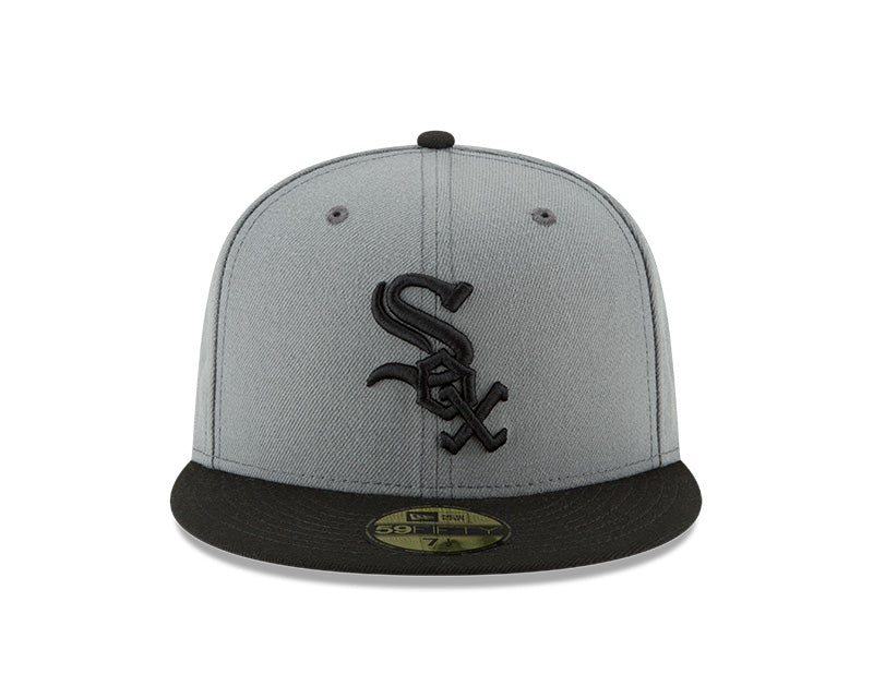 Al ser una silueta 59FIFTY, esta gorra es de tipo fitted (cerrada), proporcionando un calce firme y profesional con su característica corona alta de seis paneles. El icónico logotipo "Sox" aparece bordado en relieve en la parte frontal en color negro, destacando sobre el fondo gris con una terminación premium. Es el accesorio perfecto para los seguidores de Chicago que buscan una pieza que combine la herencia del béisbol con una estética urbana versátil.
