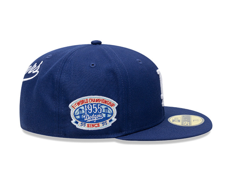 La gorra destaca por su logotipo "LA" bordado en relieve en los paneles frontales, complementado con parches conmemorativos en los laterales que celebran la historia de la franquicia. En la parte trasera, el nombre de los Dodgers luce un bordado en tipografía clásica que completa su diseño 360°. Con visera plana y ojales bordados para mayor ventilación, es el accesorio definitivo para los verdaderos coleccionistas y fans del béisbol.
