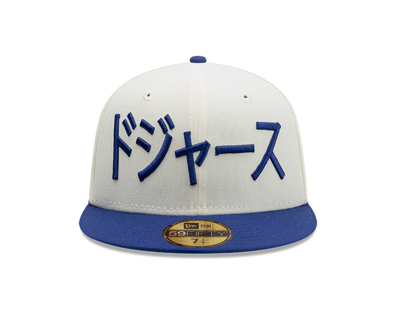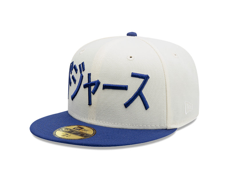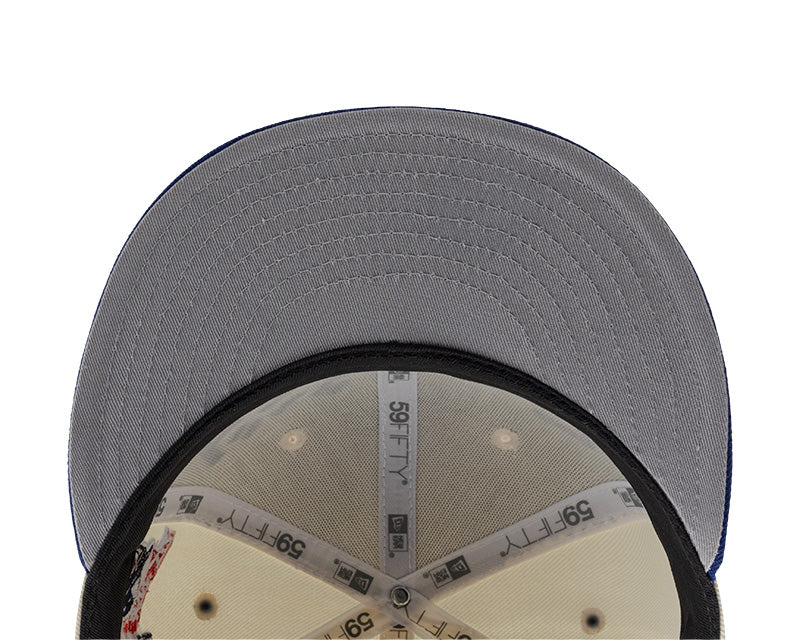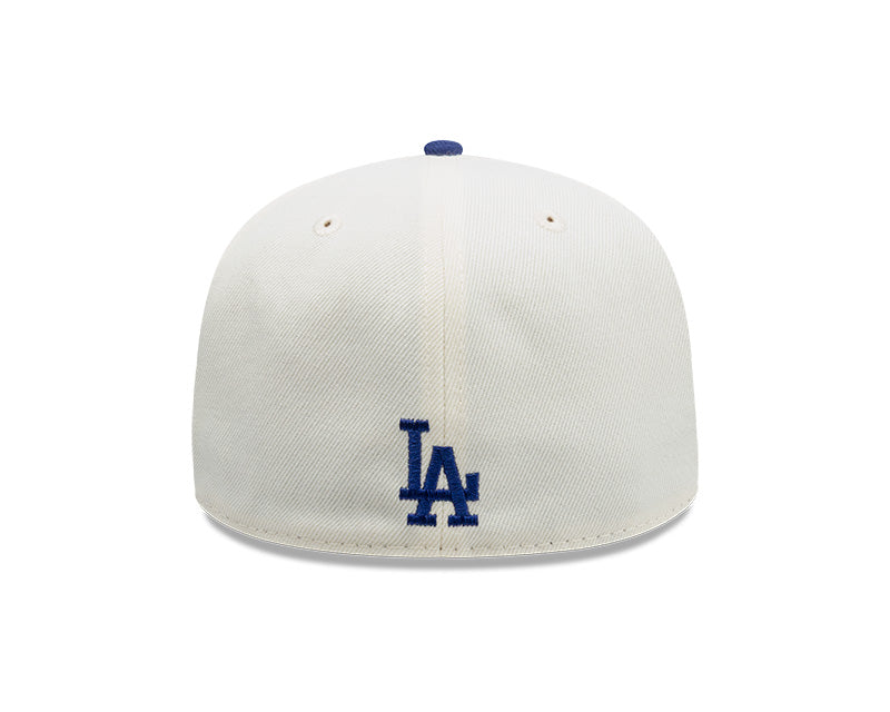 Esta pieza de colección presenta un diseño bitono sofisticado, con la corona en blanco crema y la visera en el emblemático azul real de los Dodgers.