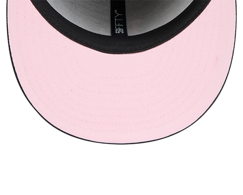 La silueta 59FIFTY garantiza el ajuste perfecto con su diseño cerrado ("Fitted") y una corona de seis paneles estructurada que mantiene un perfil alto e impecable en todo momento. El icónico logotipo "LA" frontal está bordado en relieve en un sutil color rosa pastel con un delineado en tono crema, ofreciendo una variante visualmente fresca del escudo clásico. Para completar esta estética premium, la gorra cuenta con una visera plana y un undervisor rosa a tono con el bordado. Incluye detalles auténticos como la bandera de New Era en el lateral y el logotipo de la MLB en la parte posterior en colores coordinados.