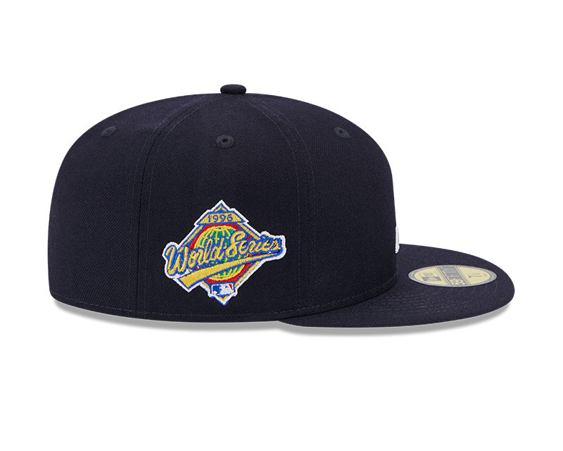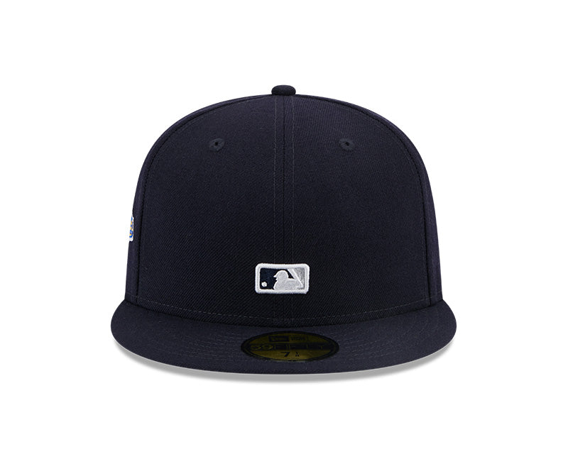 La característica estrella de esta colección es la inversión de sus emblemas: en los paneles frontales se encuentra el logotipo oficial de la MLB (Batterman) bordado en relieve, ocupando el lugar principal. El histórico logotipo "NY" entrelazado ha sido desplazado a la parte posterior de la corona, manteniendo su bordado en hilo blanco de alta densidad. Además, incluye un parche conmemorativo de la World Series de 1999 en el lateral derecho, rindiendo homenaje a uno de los títulos más emblemáticos de la dinastía de los Yankees.