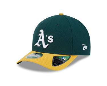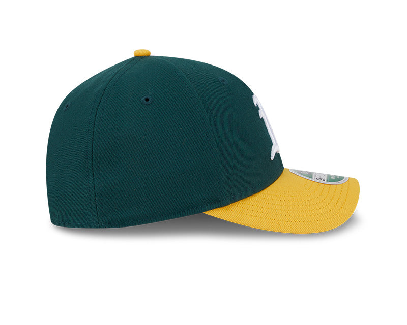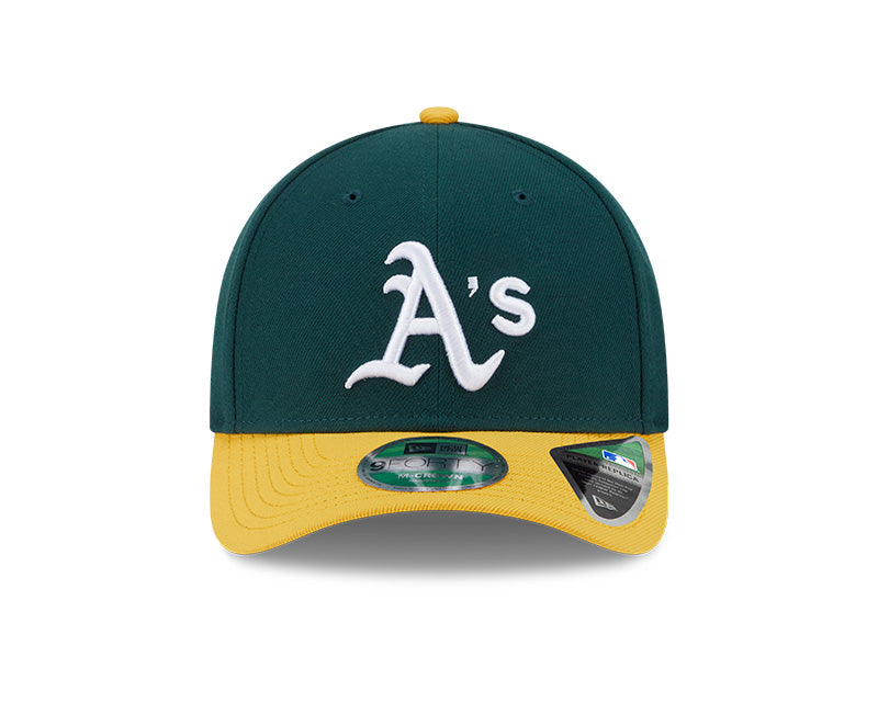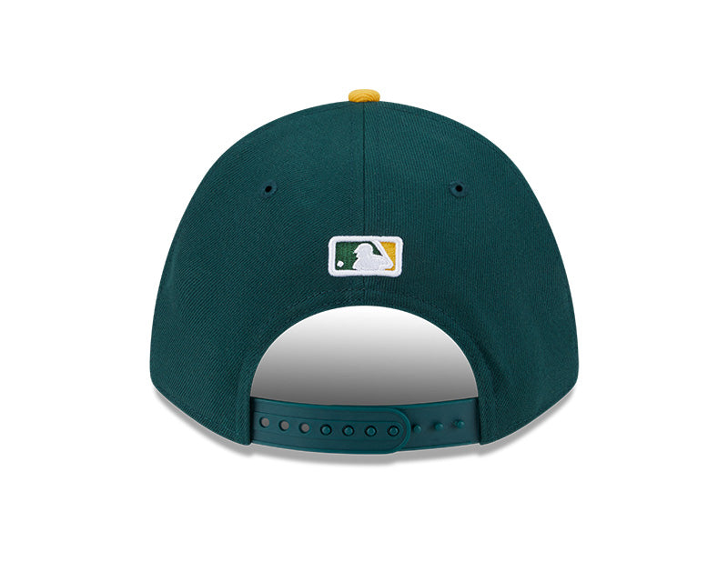 La gorra es la versión ajustable de la gorra oficial de local (Home OTC), diseñada para destacar con los icónicos tonos verde y amarillo de los Oakland